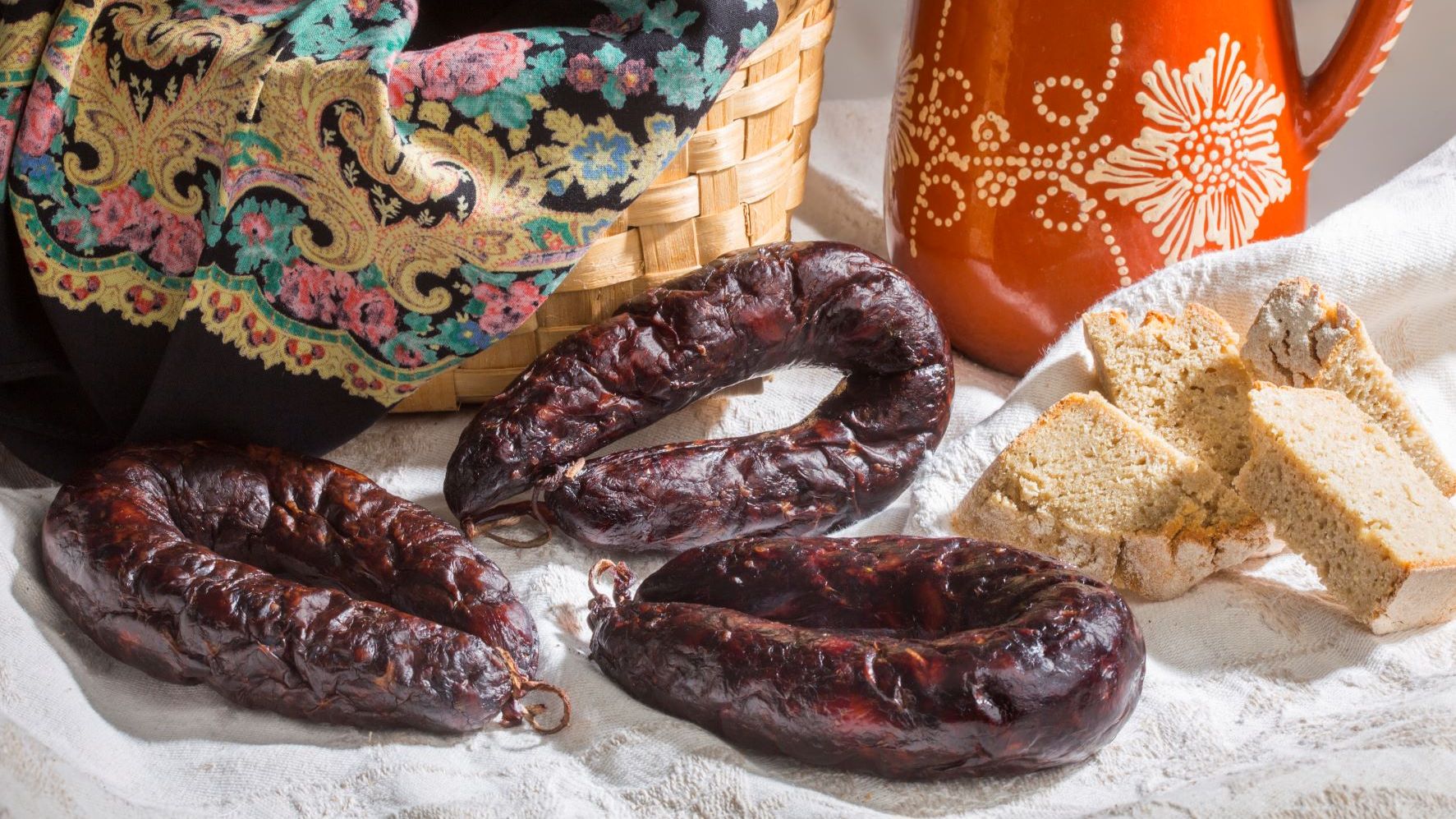 Enchimento com tripa natural de porco e fumado em lenha de carvalho.